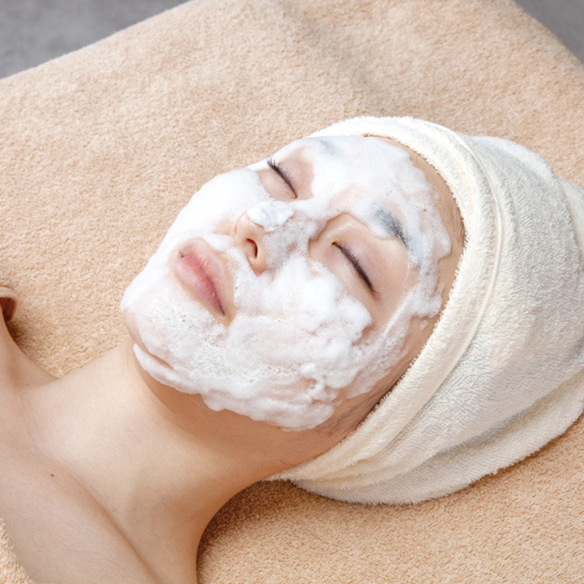 洗顔後、手やお顔が乾いた状態で手にとり、ワンステップバブルパックを塗布します。